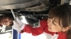 車をジャッキアップし、車体の下からオイルを抜いていきます。