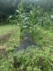 こうならないように、カラスの嫌いな釣り糸を畑に設置しました。