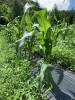 背が高くなり始めたので、風にあおられて斜めになっているとうもろこしが出てきました。